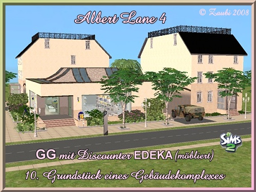 Auf diesem Grundstück finden eure Sims den Discounter: EDEKA sowie in den Wohnhäusern nebenan 4 Wohnungen die immer über 2 Etagen gehen.