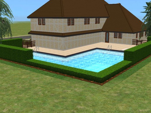 Außenbereich: Großer Swimmingpool mit Garten