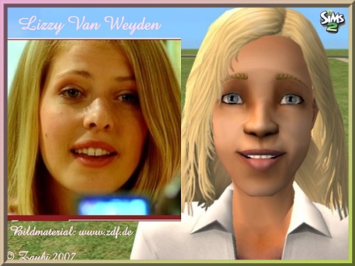 Da Lizzy als Teenie nicht alleine auf dem Grundstück stehen kann, habe ich ihr eine Mutti erstellt. Sie ist in der Telenovela leider schon gestorben. Da ich nicht wusste, wie sie heißt, hab ich ihr den Namen "Elisabeth" gegeben. Ihr könnt sie also auch sterben lassen, oder ihr lasst sie wegziehen und spielt mit ihr, denn sie ist eine hübsche Frau Winken.