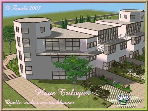 Das "Haus Trilogie" sind 3 moderne Reihenhäuser. Eure Sims haben also die Wahl. Winken