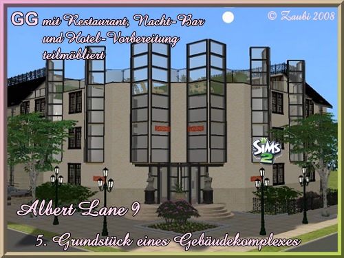 Das Grundstück "Albert Lane 9" ist das 5. von insgesamt 10 Grundstücken eines Gebäudekomplexes für die Freizeitgestaltung eurer Sims.