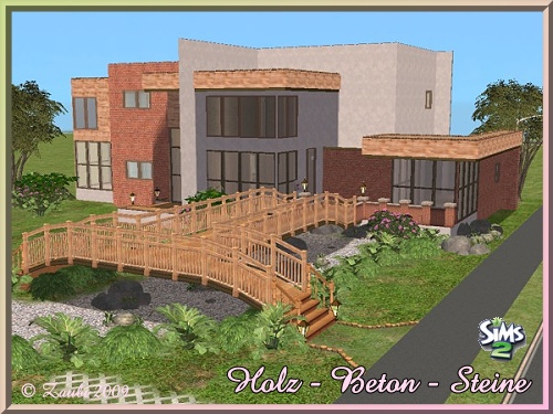 "Holz - Beton - Steine" sind die Materialien, aus denen dieses moderne Haus gebaut wurde.