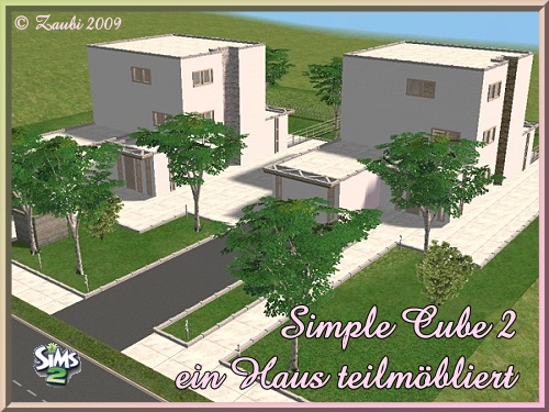 "Simple Cube 2" ist auch ein Grundstück für Liebhaber des Purismus mit 2 identischen Häusern. Einfach geschnitten, .. geringe Gartengestaltung, .. Hier kann jeder Sim sein eigenes kleines Paradies errrichten